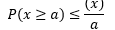 Markov’s inequality says that for a positive random variable X and any positive real number a, the probability that X is greater than or equal to a is less than or equal to the expected value of X divided by a.