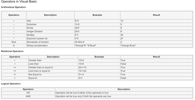 By default Visual Basic variables are of variant data types. The variant data type can store numeric, date/time or string data. When a variable is declared, a data type is supplied for it that determines the kind of data they can store. The fundamental data types in Visual Basic including variant are integer, long, single, double, string, currency, byte and boolean. Visual Basic supports a vast array of data types. Each data type has limits to the kind of information and the minimum and maximum values it can hold. In addition, some types can interchange with some other types. A list of Visual Basic’s simple data types are given below.